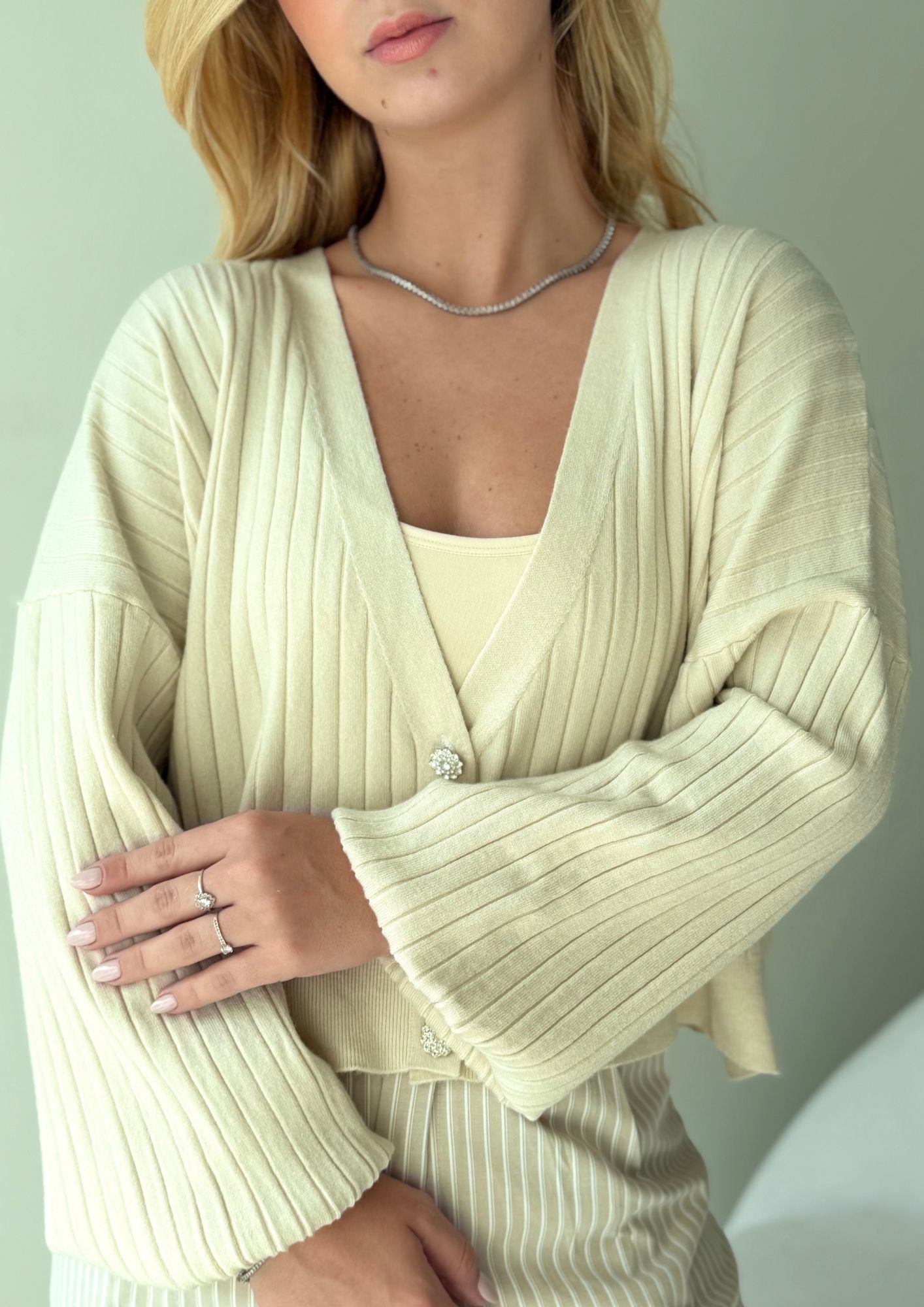 Cardigan de fio com toque de cachemir, é suave, macio ao toque, delicado e alto grau de confortabilidade! Esquenta sem abafar, tem um caimento perfeito, não pinica, é muito leve e macio, não amassa fácil, tem detalhes de botões em pedrarias delicadas e elegantes.