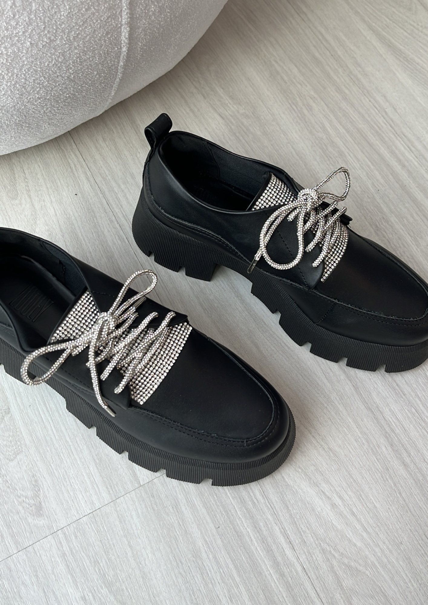Ele vem com dois cadarços o de brilho e um preto, para você escolher como fica melhor no seu look.