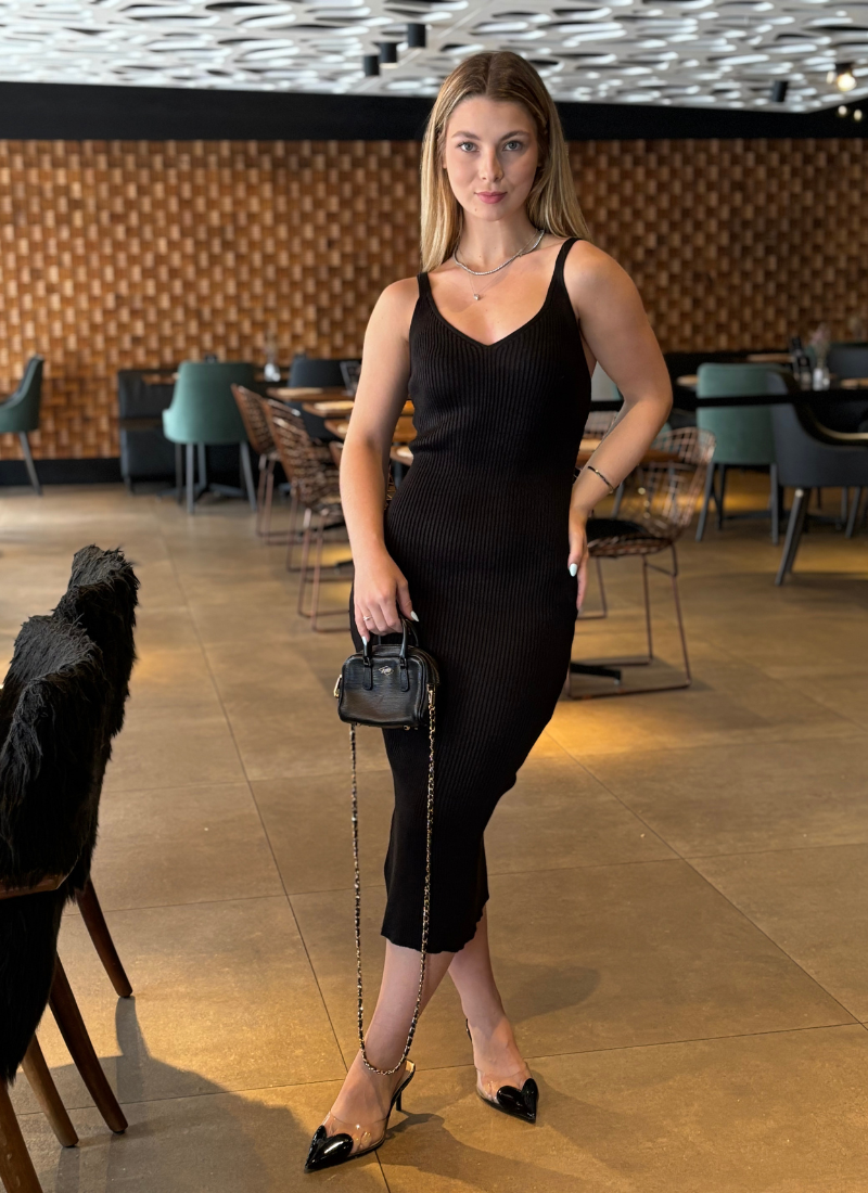 Vestido de tricô comprimento midi, com alça regata, tem uma fenda na lateral da barra, é leve e estilso, ideal para quem ama umapeça bem confortável e elegante. Modela bem o corpo, não fica transparente e estica super bem, é um tamanho único mas serve do PP ao G perfeitamente. Não tem forro, porém o tricô é bem reforçado e com alta tecnologia de elasticidade.
